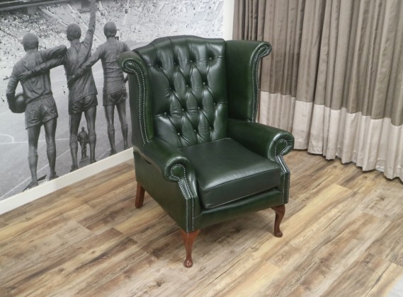 ViewScroll Wing Chair Chesterfield Leather Armchair - Scroll Wing Chair - Leather/Fabric mix green